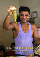 Indian man cooking fritter chilli, Rajasthan, Jaipur, India