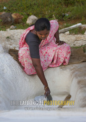 Squatting Woman Drawing Lime With A Bucket, Madurai, India