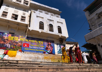 Indian pilgrims on the bathing ghats, Rajasthan, Pushkar, India