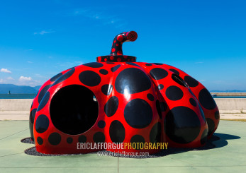 Yayoi Kusama red pumpkin, Seto Inland Sea, Naoshima, Japan