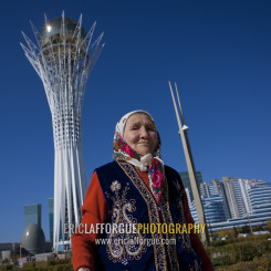 Old Woman In Front Of Baiterek Tower, Astana, Kazakhstan