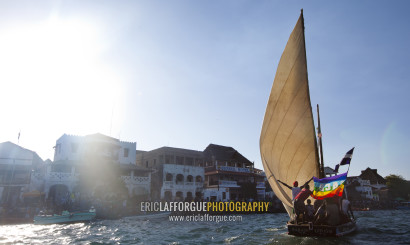 Dhow sailing along the coast, Lamu County, Lamu, Kenya