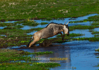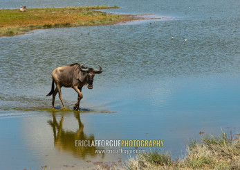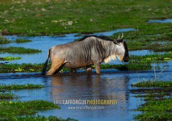 Wildebeest crossing a lake, Kajiado County, Amboseli, Kenya