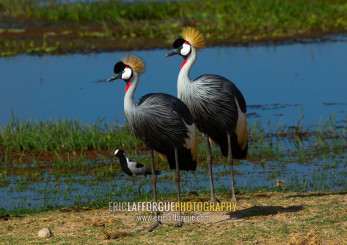 Grey crowned cranes couple (Balearica regulorum), Kajiado County, Amboseli, Kenya