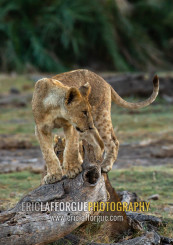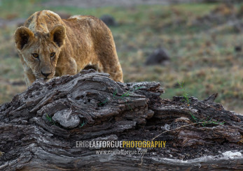 Lioness on a dead trunk, Kajiado County, Amboseli, Kenya