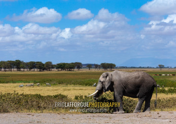 Elephant (Loxodonta africana) eating grass, Kajiado County, Amboseli, Kenya