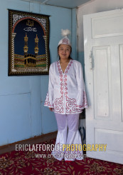 Woman Wearing Traditional Clothes And Headgear, Village Of Kyzart, Kyrgyzstan