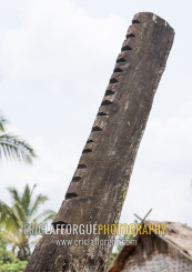 Alak minority sacrifice crocodile pillar, Boloven, Laos