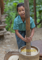 Khmu minority woman with pestle, Xieng khouang, Laos