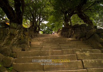 People climbing stairs at wat phu khmer temple, Champasak, Laos
