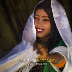 Smiling tuareg girl in traditionnal clothing, Tripolitania, Ghadames, Libya