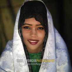 Smiling tuareg girl in traditionnal clothing, Tripolitania, Ghadames, Libya