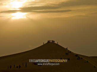 People in the desert on a dune, Tripolitania, Ghadames, Libya