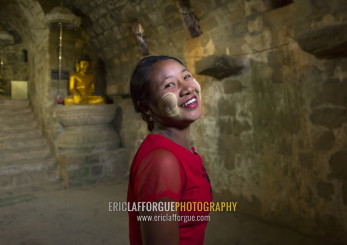Burmese Girl Inside Htuk Kant Thein Temple, Mrauk U, Myanmar