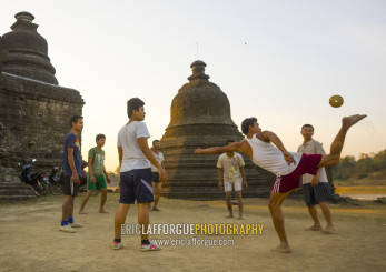 Men Playing Chinlone In Front Of Stupas, Myanmar