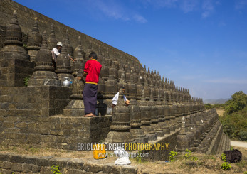Men Restoring Stupas At Kothaung Temple, Mrauk U, Myanmar