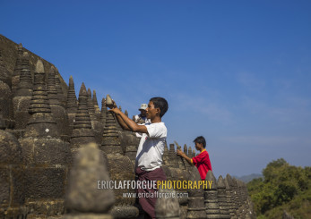 Men Restoring Stupas At Kothaung Temple, Mrauk U, Myanmar