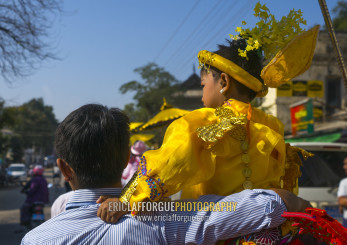 Child And Father During A Novitiation Parade, Bagan, Myanmar