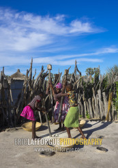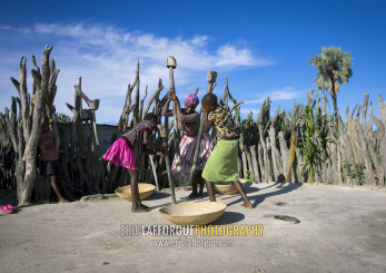 African Women With Mortars And Pestles, Ondangwa, Namibia