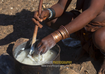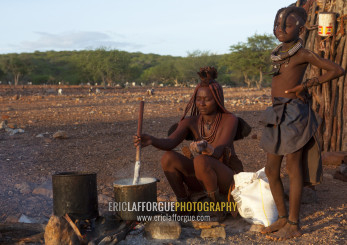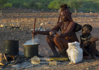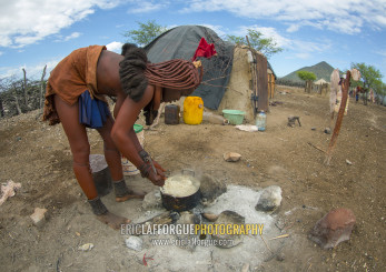 Himba Woman Cooking, Epupa, Namibia