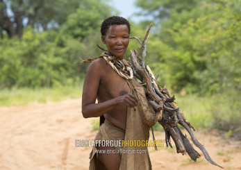 Bushman Woman Carrying Wood, Tsumkwe, Namibia