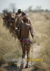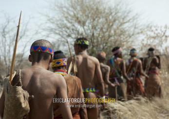 Group Of Sans Walking In The Bush, Namibia