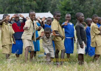 Rwandan pupils outside of a school, Lake Kivu, Gisenye, Rwanda