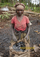 Rwandan woman selling coal, Western Province, Cyamudongo, Rwanda