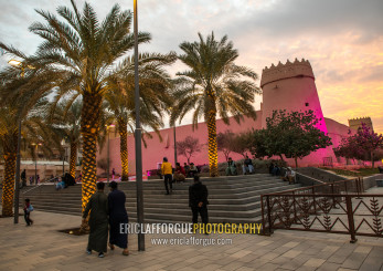 Musmak fort at dusk, Riyadh Province, Riyadh, Saudi Arabia