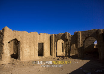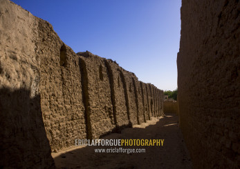 Sudan, River Nile, Al-Khandaq, abandonned mud brick house al-khandaq