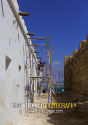 Sudan, Port Sudan, Suakin, scaffolding on a renovated building