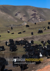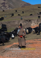 Tibetan nomad herds yaks, Tongren County, Rebkong, China