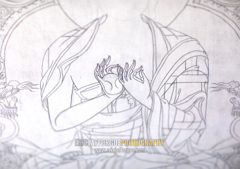 Thangka painting in progress , Qinghai province, Wutun, China