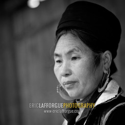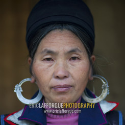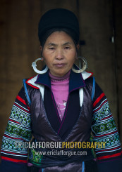 Black hmong woman with traditional headgear and earrings, Sapa, Vietnam