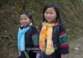 Black hmong girls wearing traditional scarves, Sapa, Vietnam