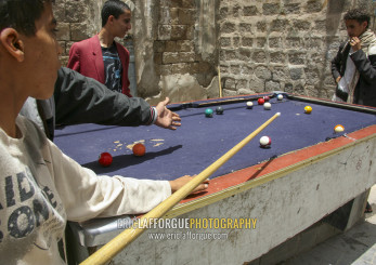 Yemeni young men playing snooker, Amanat Al-Asemah, Sanaa, Yemen