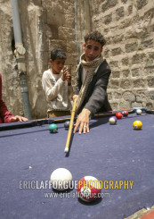 Yemeni young men playing snooker, Amanat Al-Asemah, Sanaa, Yemen
