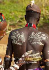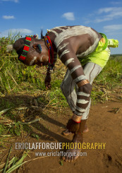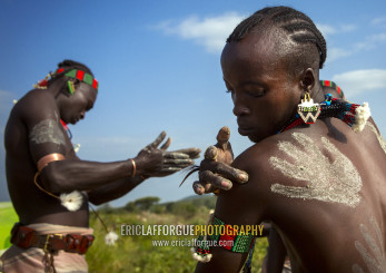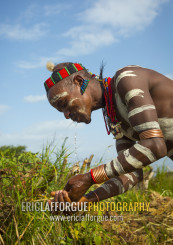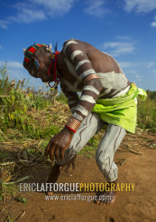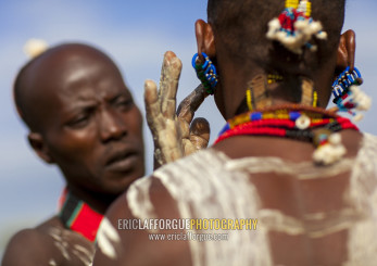 Bashada Tribe Man Making Body Painting, Dimeka, Omo Valley, Ethiopia