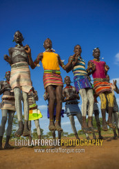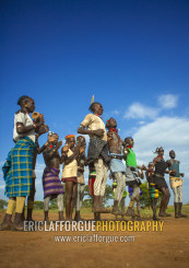 Bashada Tribe Men Dancing And Jumping, Dimeka, Omo Valley, Ethiopia