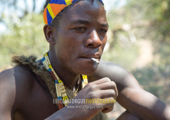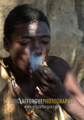 Tanzania, Serengeti Plateau, Lake Eyasi, hadzabe tribe man smoking cannabis