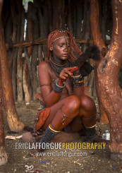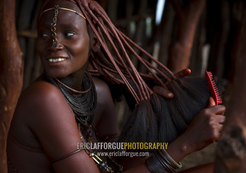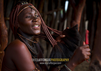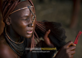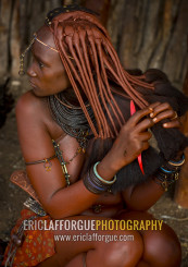 Himba Woman Taking Care Of Her Hair, Epupa, Namibia