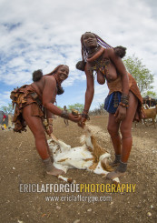 Himba Women Taking Care Of Goats, Epupa, Namibia