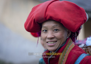 Red dzao woman with a red headgear, Sapa, Vietnam