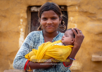 Young rajasthani mother with her baby, Rajasthan, Jaisalmer, India