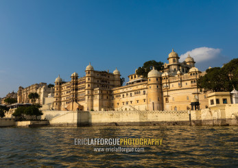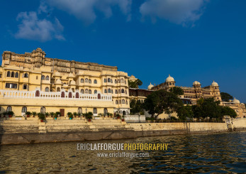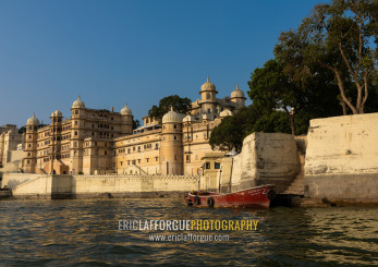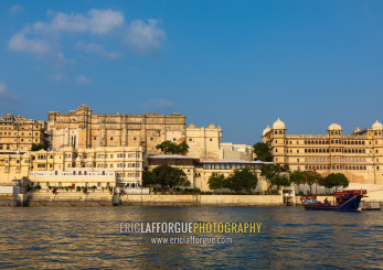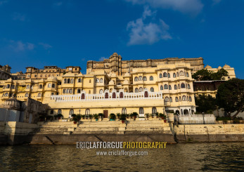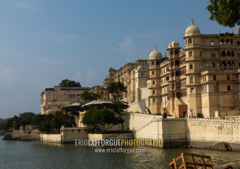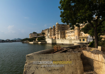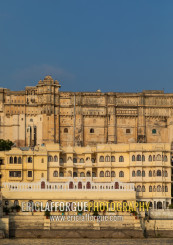 The city palace alongside lake Pichola, Rajasthan, Udaipur, India