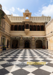 Rajput style courtyard inside the city palace, Rajasthan, Udaipur, India