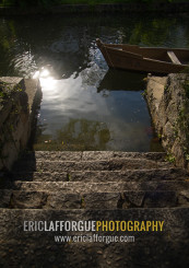 Boat moored at riverbank, Okayama Prefecture, Kurashiki, Japan