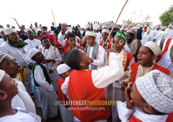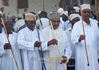Muslim men celebrating the Maulid festival, Lamu County, Lamu, Kenya