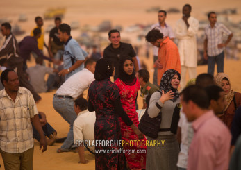 People and cars in the desert, Tripolitania, Ghadames, Libya