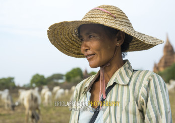 Sheperd Woman In Front Of An Old Temple, Bagan, Myanmar